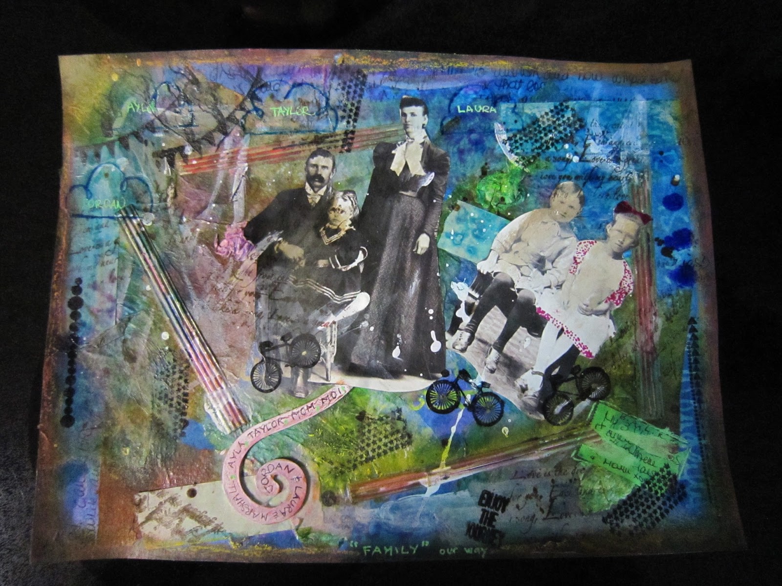this piece was for another "whatever" story line. Fun and wild. I decided to integrate some of my past scrapbooking and card ephemera. i'm starting to like doing that again. do you do any of that? let me know what and how you use yours. i'd be really interested to know.